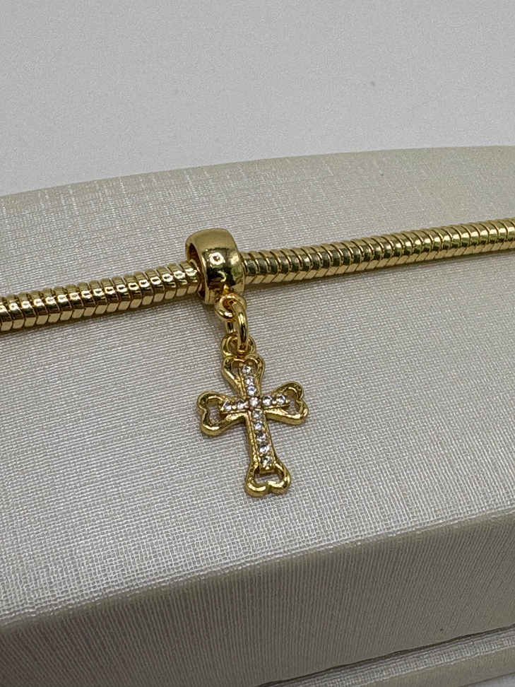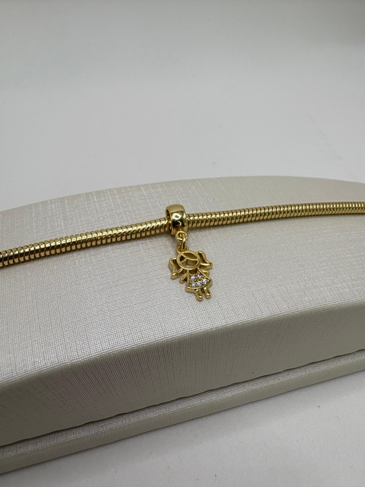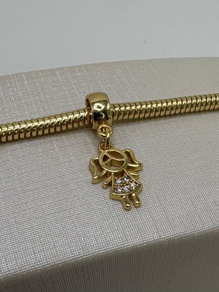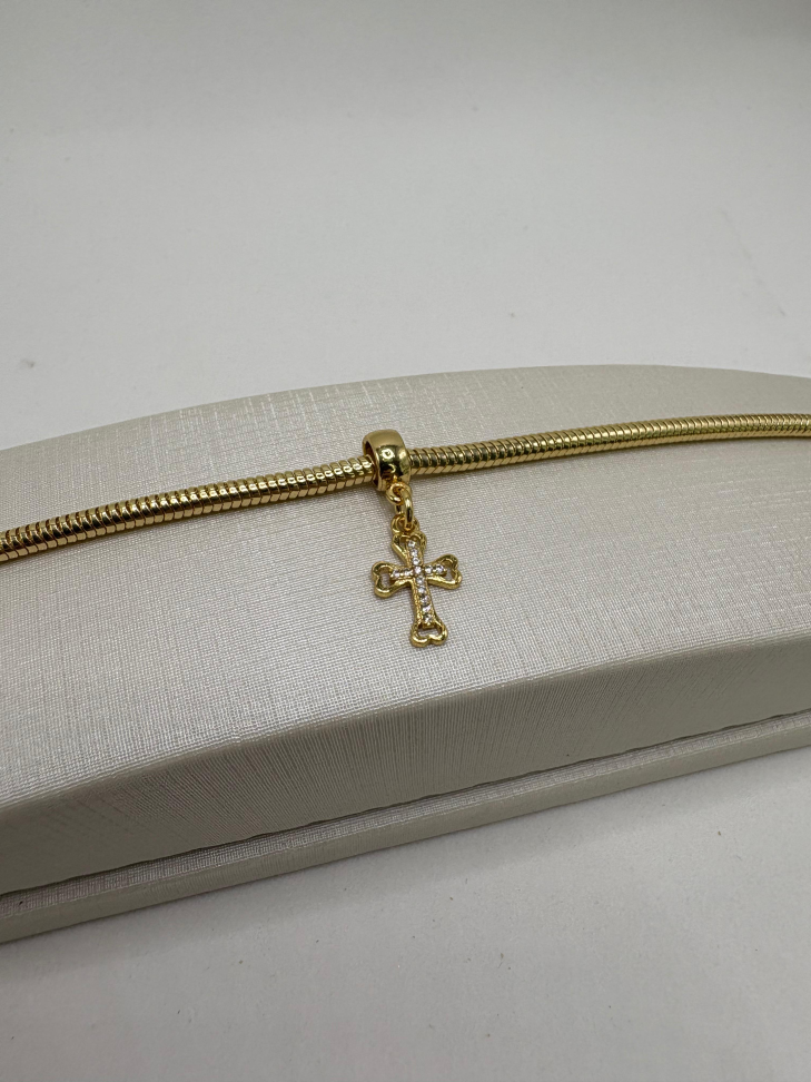 Berloque semijoia osso com zircônia cravejado.