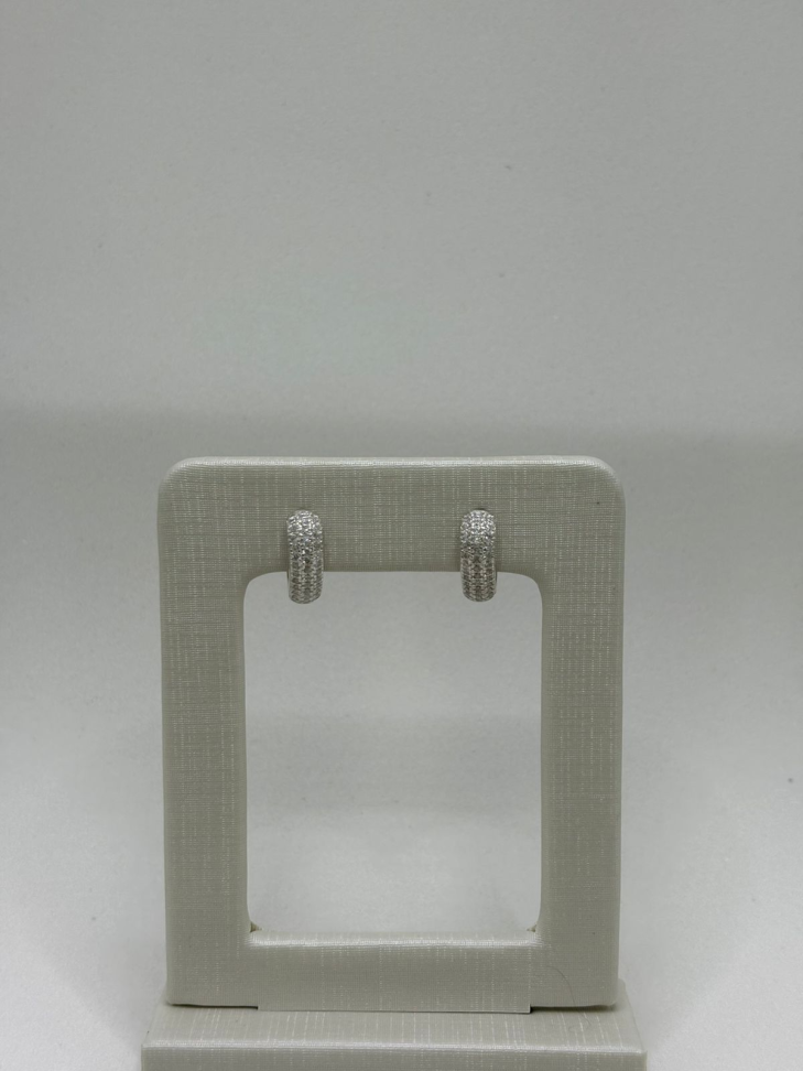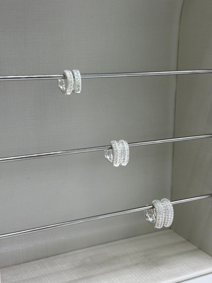 Brinco prata argola zircônia cravejado, tamanho grande.