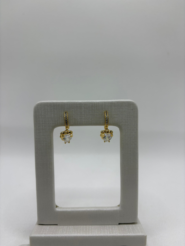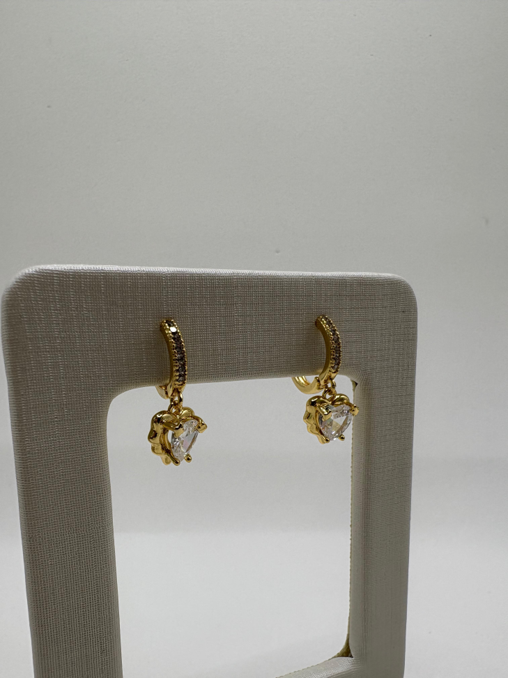 Brinco semijoia argola com pingente de coração cravejado.