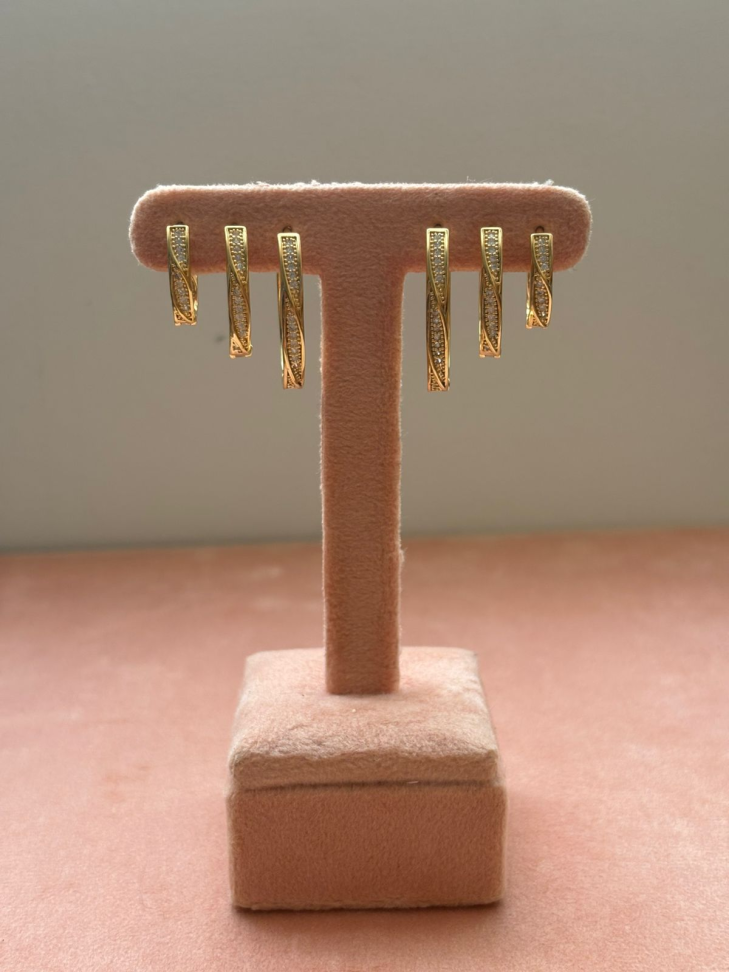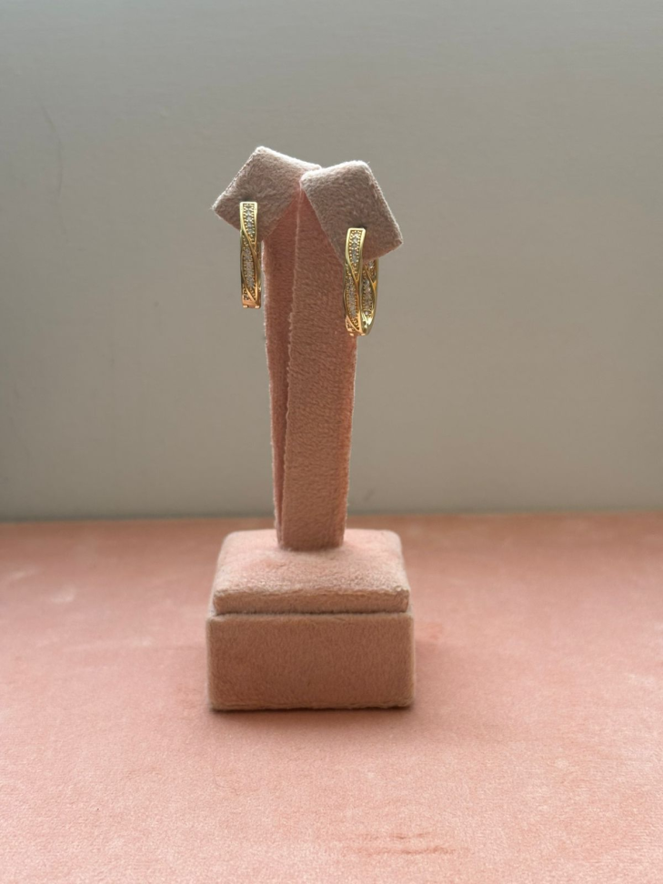 Brinco semijoia argola zircônia brancas.