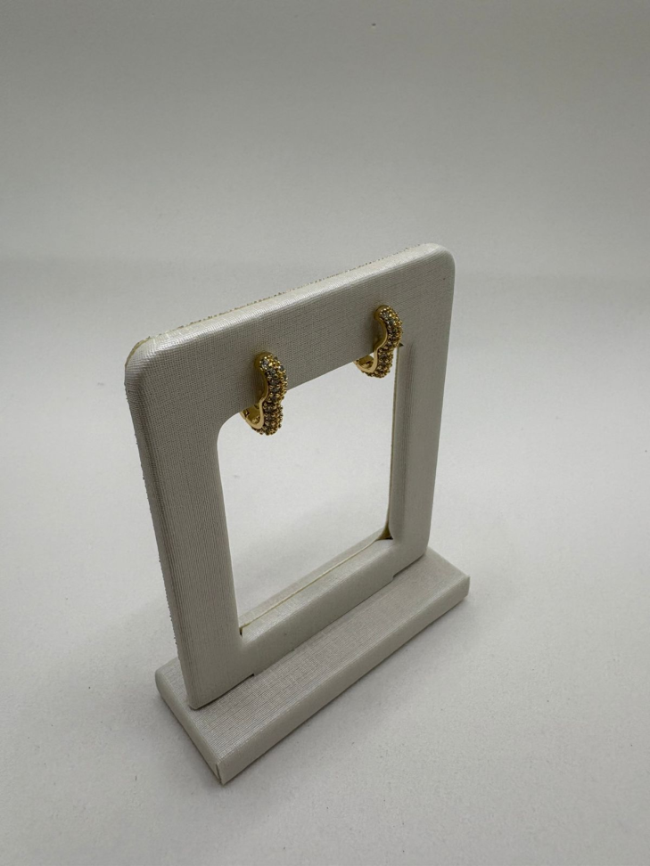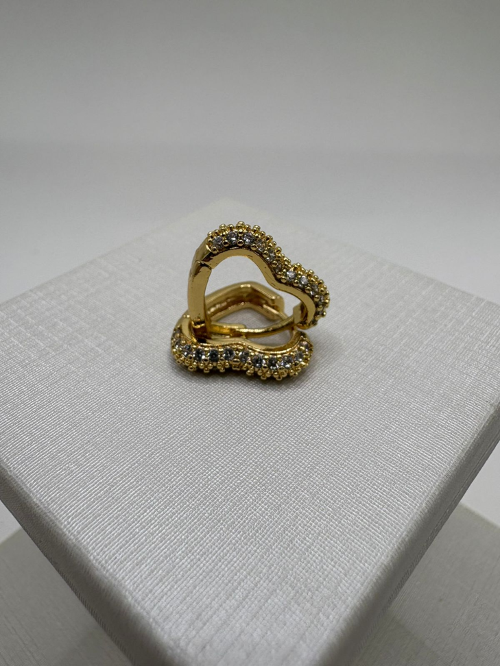 Brinco semijoia coração zircônia cravejada e mini zircônia na borda.