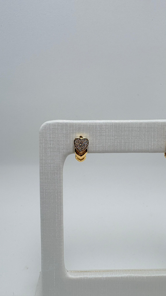 Brinco semijoia meia argola, um lado liso e outro lado cravejado em zircônia.