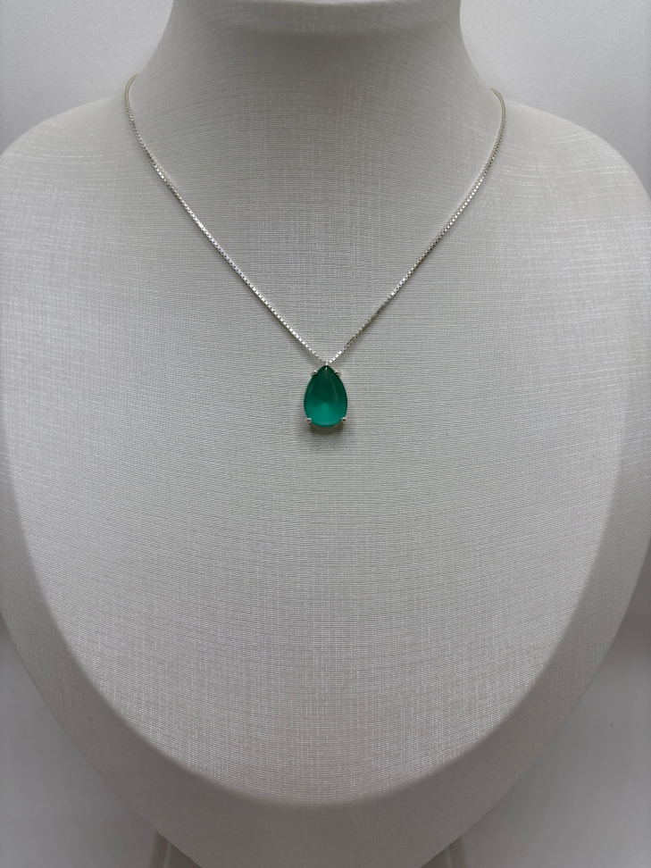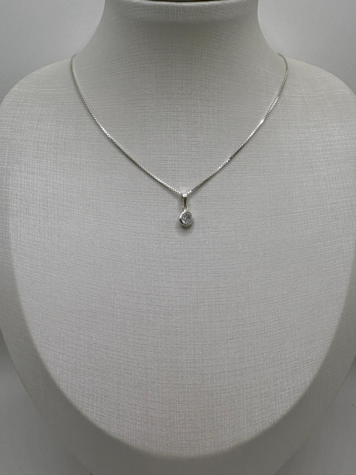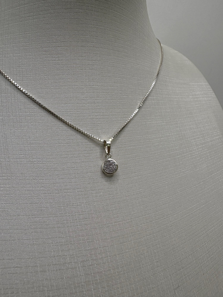 Gargantilha prata veneziana redondo trabalhado vazado Nossa Senhora Aparecida com zircônia azul.