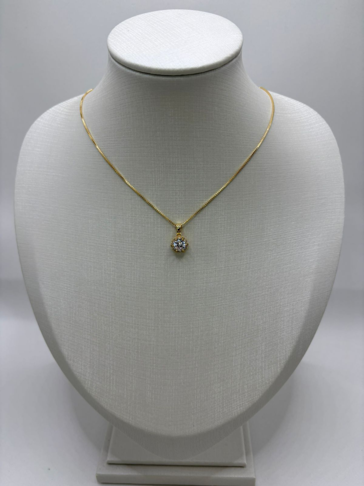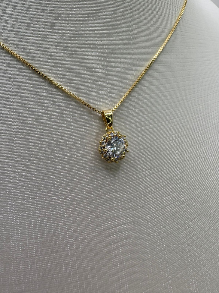 Pingente semijoia medalha de São Bento com zircônia em volta.