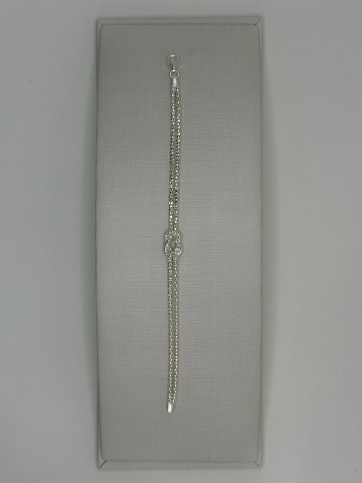 Pulseira prata elos com pingente em zircônia de coração.