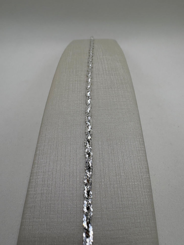 Pulseira prata elos redondos cinco borboletas coloridas.