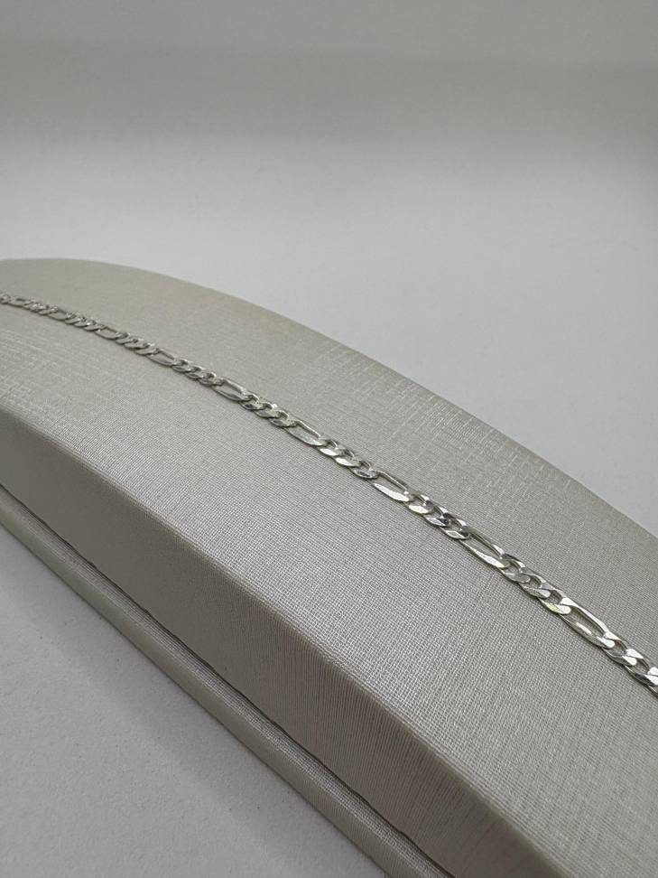 Pulseira prata com pingentes de zircônia e olho grego pendurados.