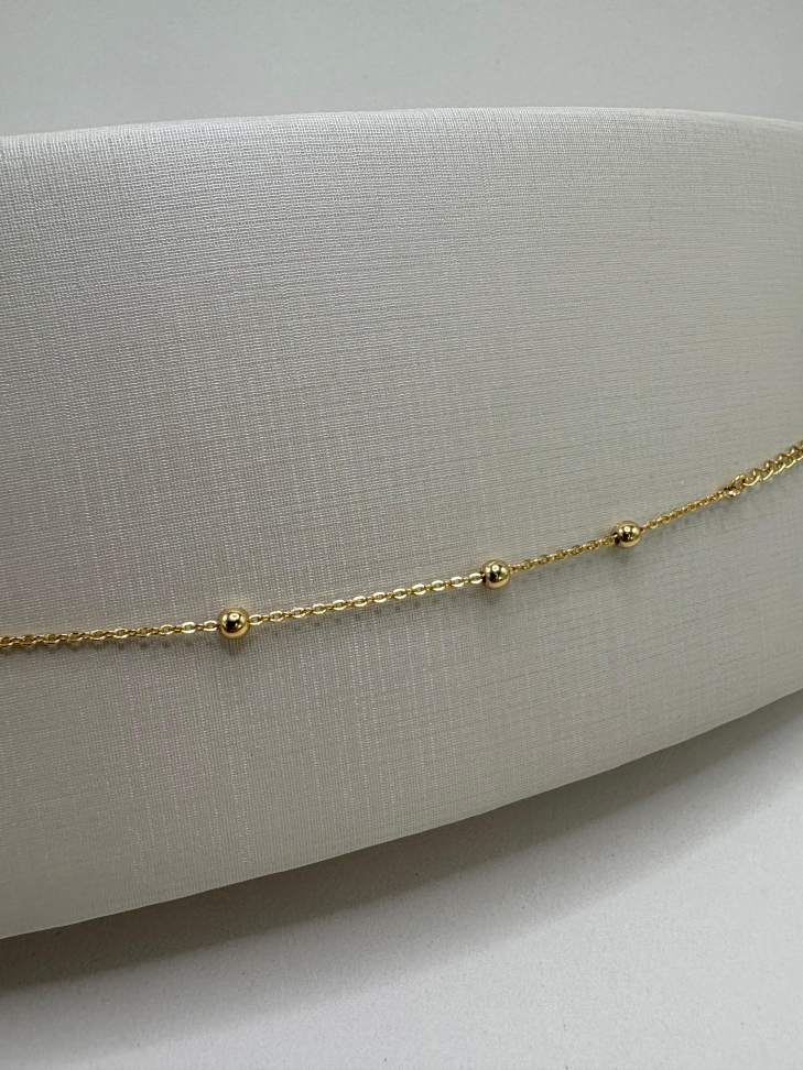 Pulseira semijoia elos com bolas lisas espaçadas.