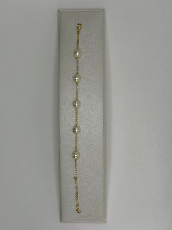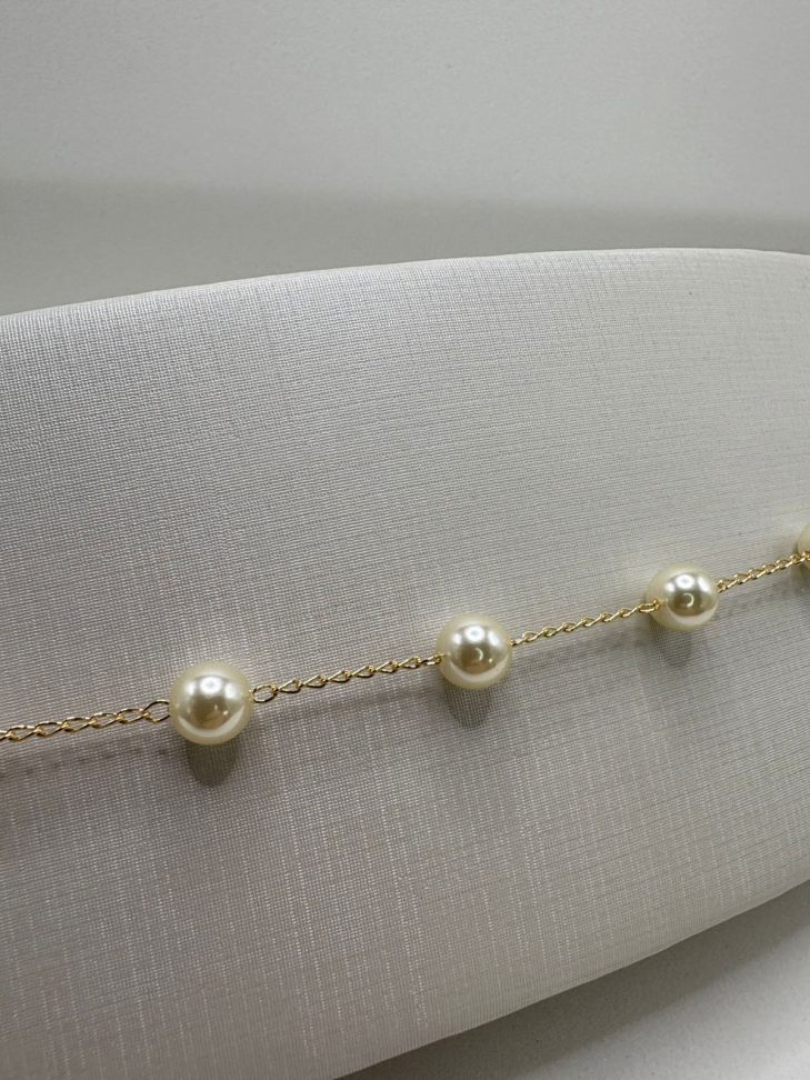 Pulseira semijoia elos com bolas espaçadas.